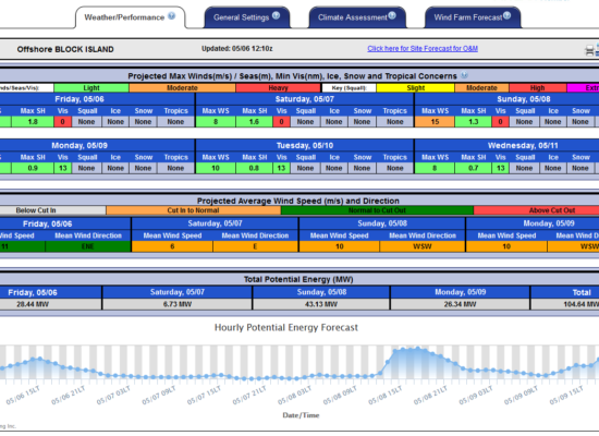 • On-shore operations will be kept well advised of any potential weather concerns, along with potential energy production, where cut-in and cut-out thresholds are clearly displayed.